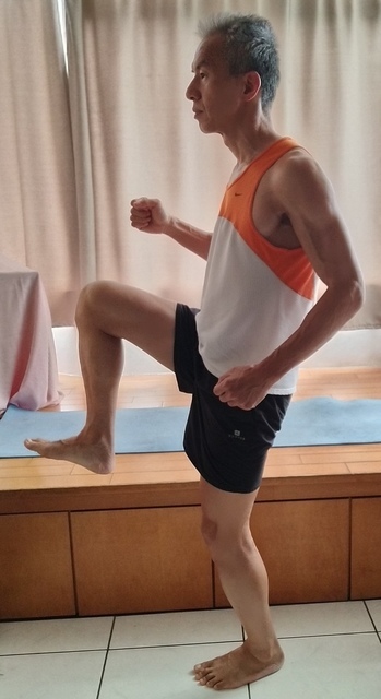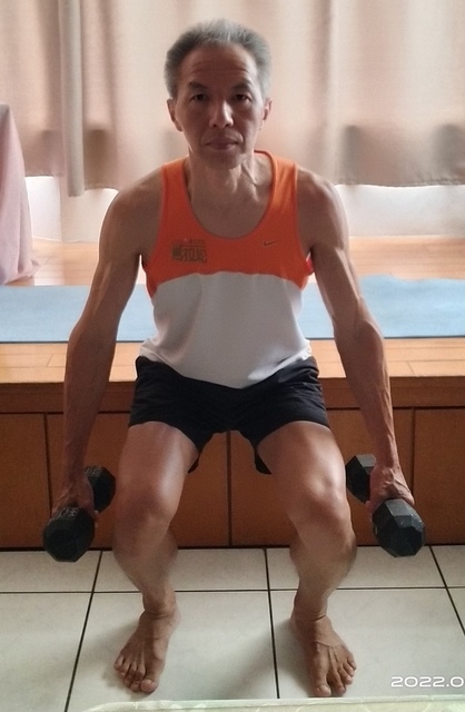 我每日的健身鍛鍊區分為三段,第一段跑前熱身操練,第二段12公里以上5分速跑步,第三段跑後伸展拉筋操練,以下是我比賽前每天的鍛鍊項目