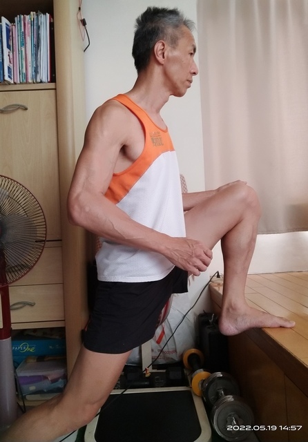 3. 台階屈膝壓腿起身,左右腳各10下5回