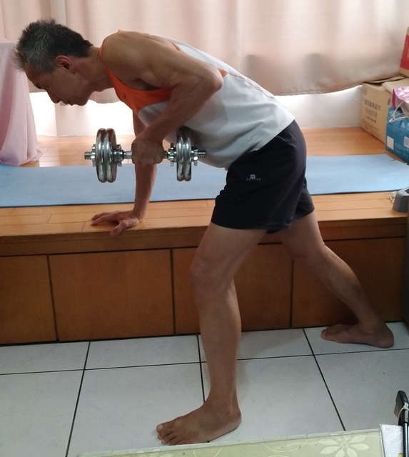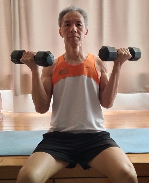 雙臂各7.5Kg啞鈴彎舉放下100回